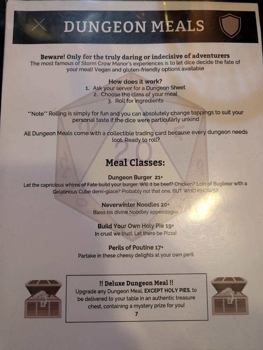 Storm Crow Manor Menu